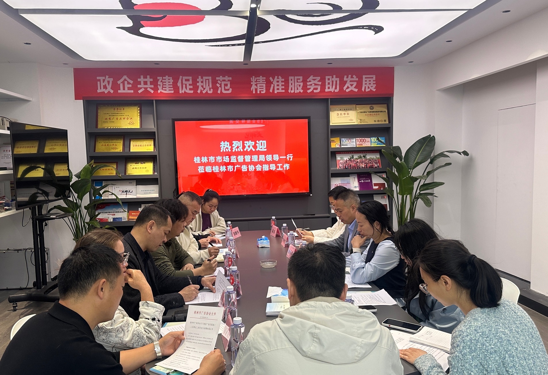 4月1日,桂林市市场监管局广告科与“小个专”党建工作科深入市广告协会开展指导服务活动,与协会及多家会员单位座谈交流,共同为促进全市广告产业高质量发展建言献策。