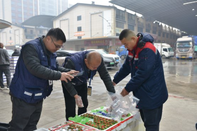 抽样人员对草莓开展抽样