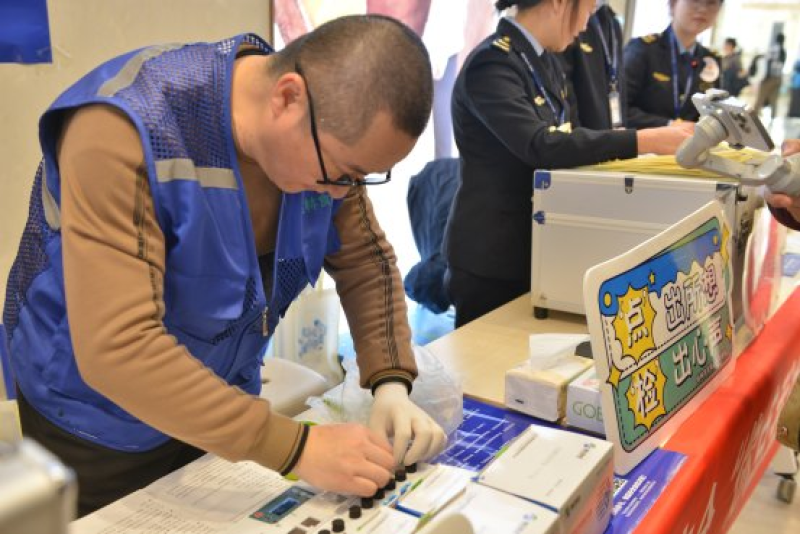 工作人员免费为群众开展食品安全快检服务