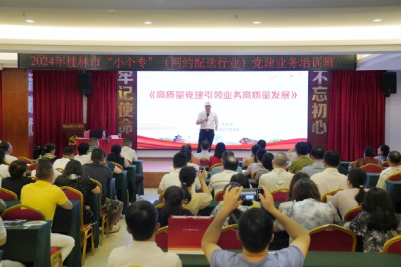 7月4日,桂林市“小个专”(网约配送行业)党委联合象山区委社会工作部在桂林锦怡假日大酒店举办桂林市“小个专”(网约配送行业)党建业务培训班。桂林市六城区及部分县(市)两新组织党组织书记、出资人和党员代表90余人参加了培训。
