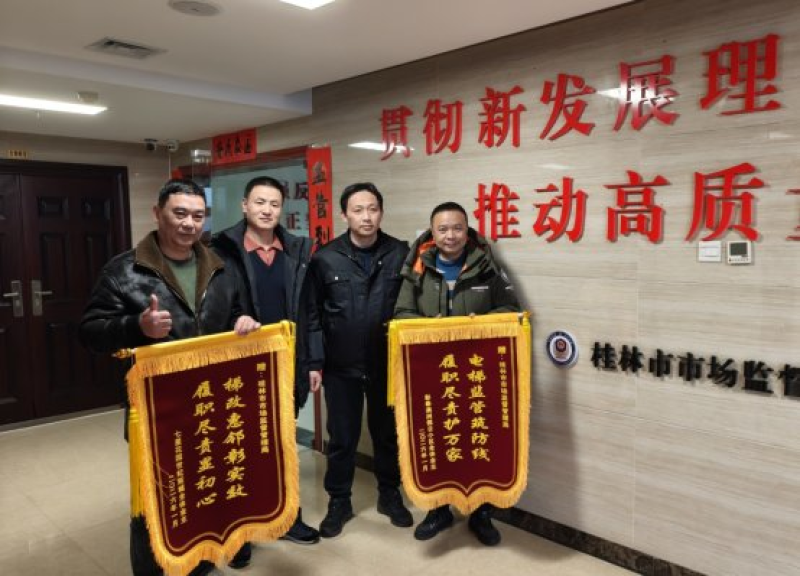 两面绣着鎏金大字的锦旗,近日被送到了桂林市市场监管局。“梯改惠邻彰实效,履职尽责显初心!”“电梯监管筑防线,履职尽责护万家!”送锦旗的,是彰泰澳洲假日、世纪新城两个小区的业主代表。握着工作人员的手,业主王先生的激动之情溢于言表:“换了新电梯,老人小孩上下楼安心多了,你们真是把实事办到了我们心坎上!”