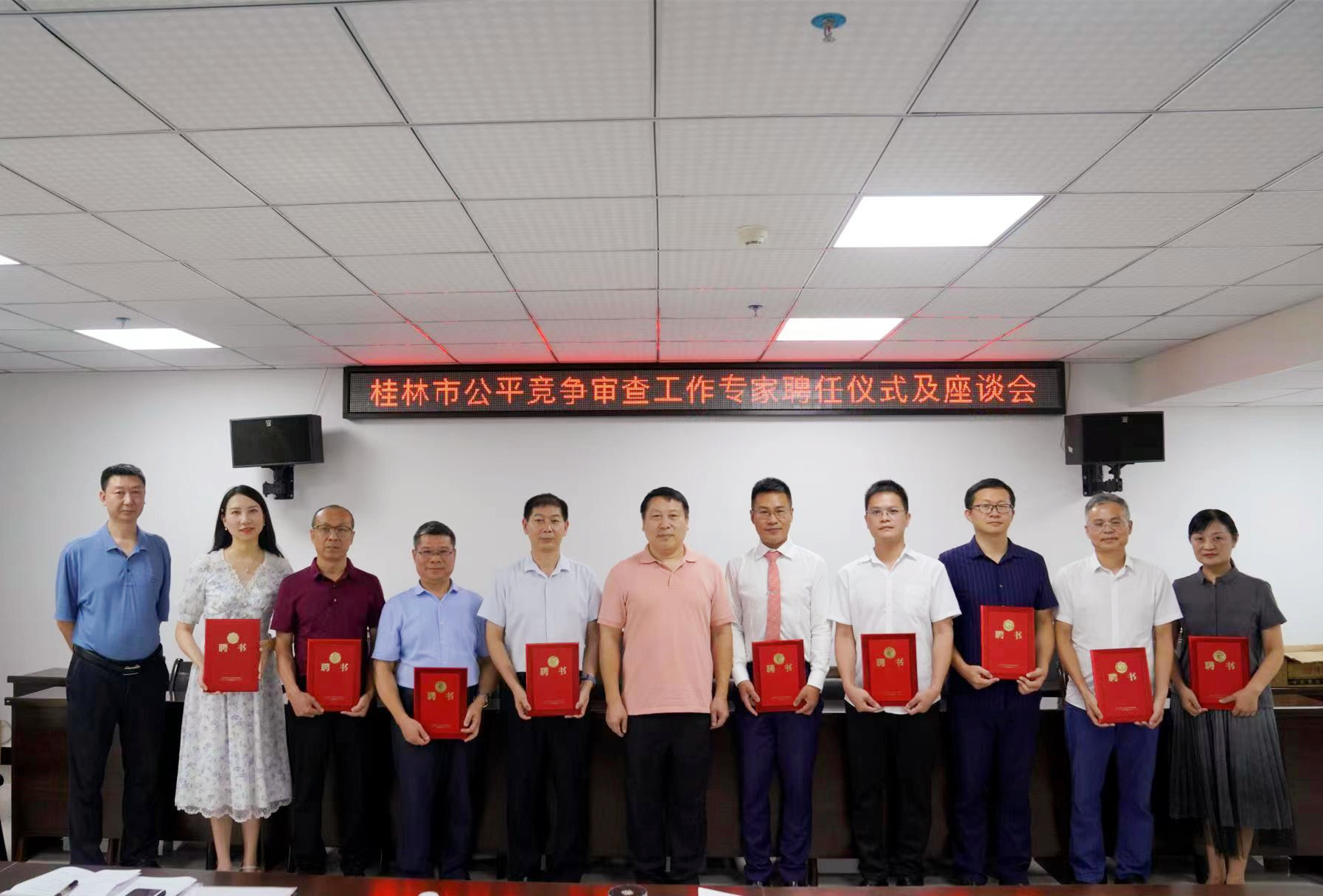 当天上午,桂林市公平竞争审查工作联席会议办公室在桂林市市场监管局举行聘任仪式暨座谈会,会上宣读了《关于组建桂林市公平竞争审查工作专家库的通告》,研究制定了《桂林市公平竞争审查工作专家库工作规则》,并为市公平竞争审查专家库专家代表颁发聘书。